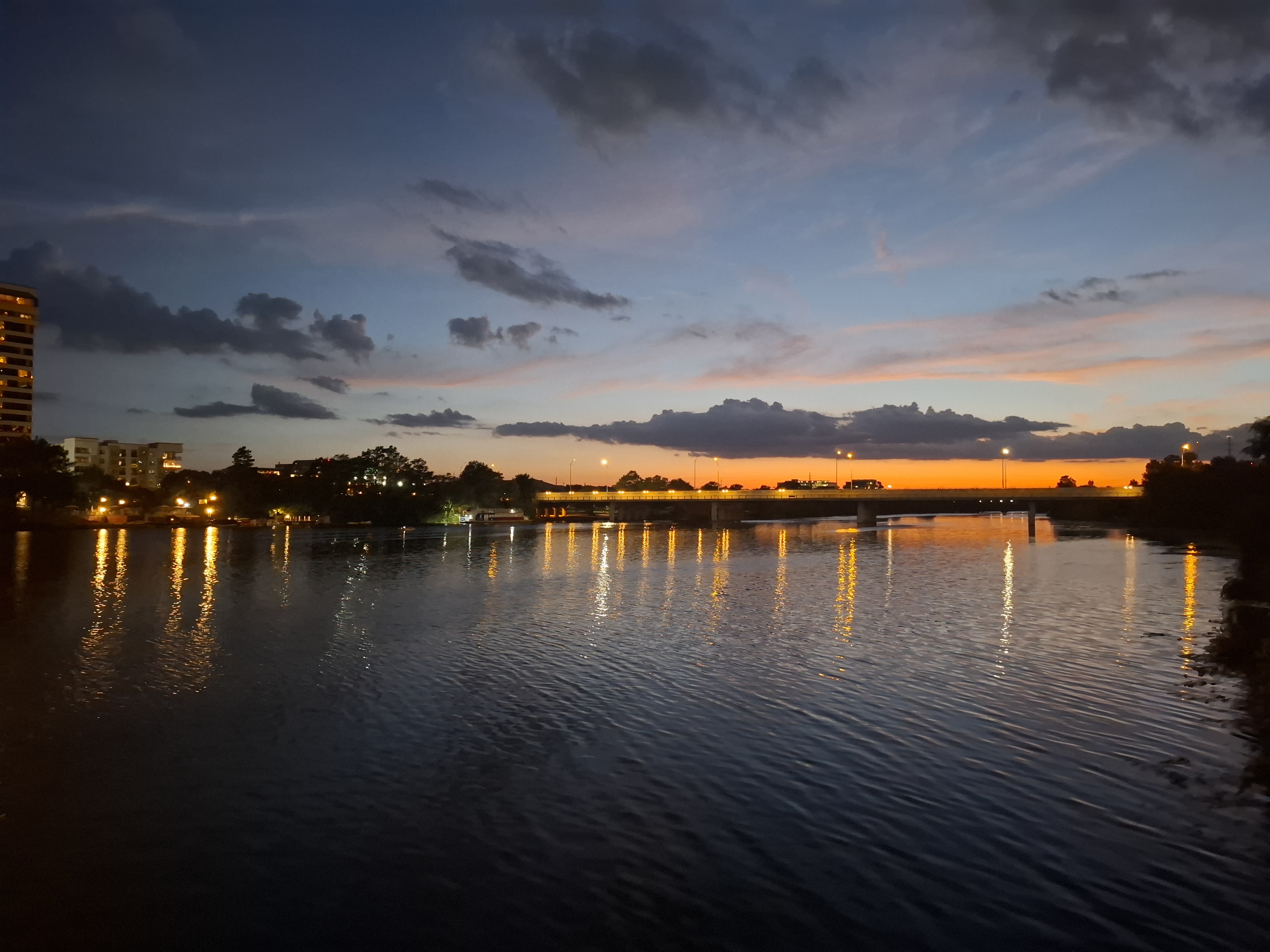 • Q Bridge and the bay from the Canal Dock Boathouse